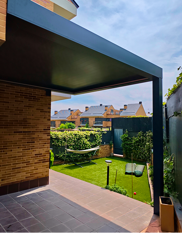 En este proyecto ubicado en Madrid, el reto consistía en instalar una pérgola Apex Solid en una terraza estrecha, sin sobrecargar el espacio visual ni funcional.