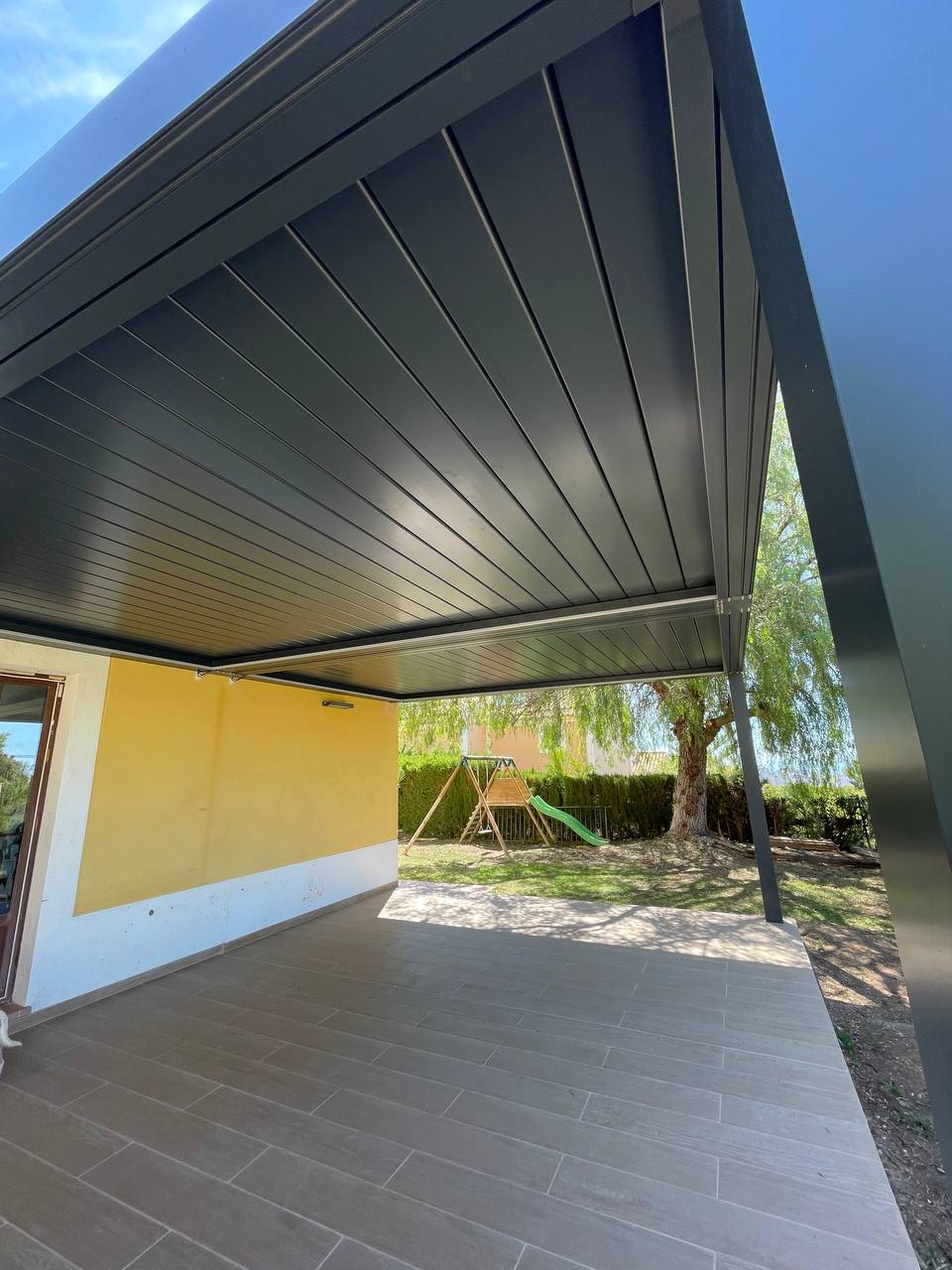 Gracias a su diseño versátil, la pérgola se integra de manera armónica con la arquitectura existente, realzando la personalidad de la casa y aportando un valor añadido a su estética contemporánea.