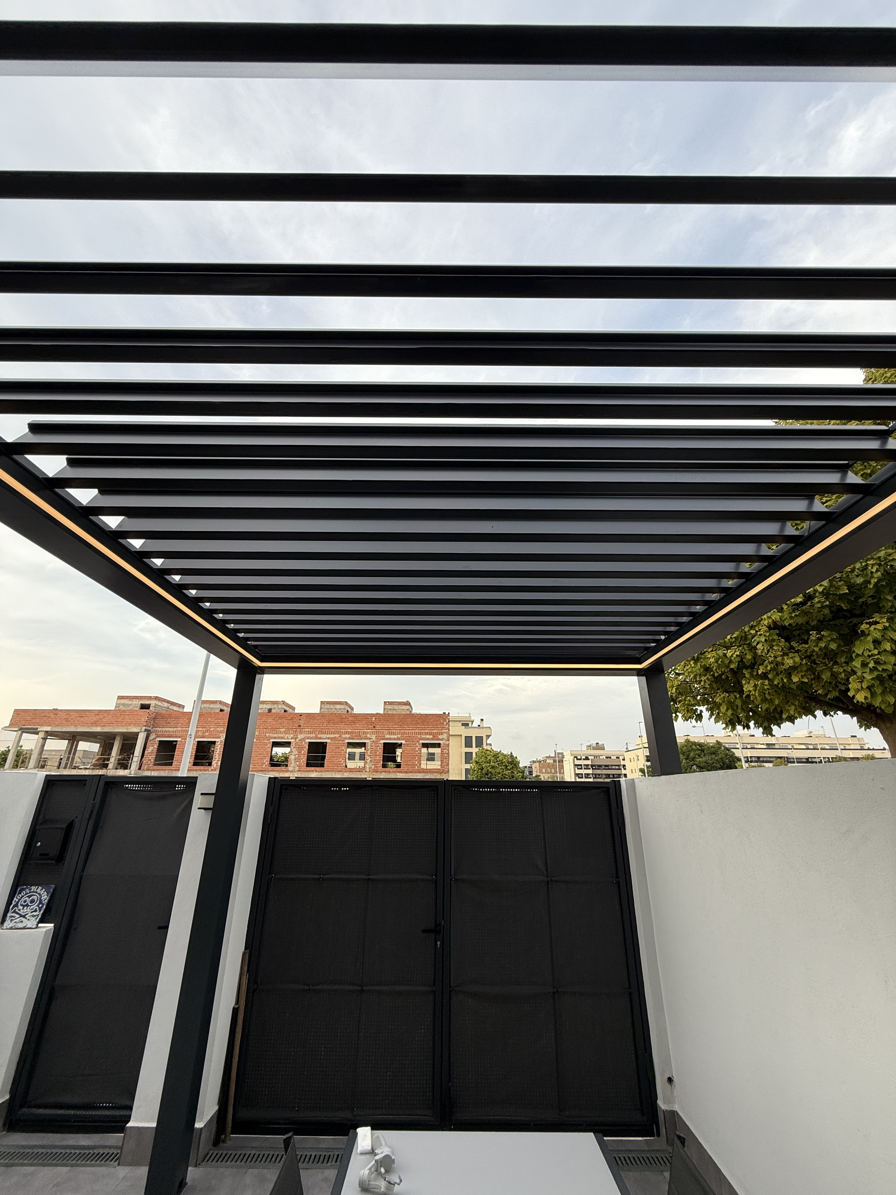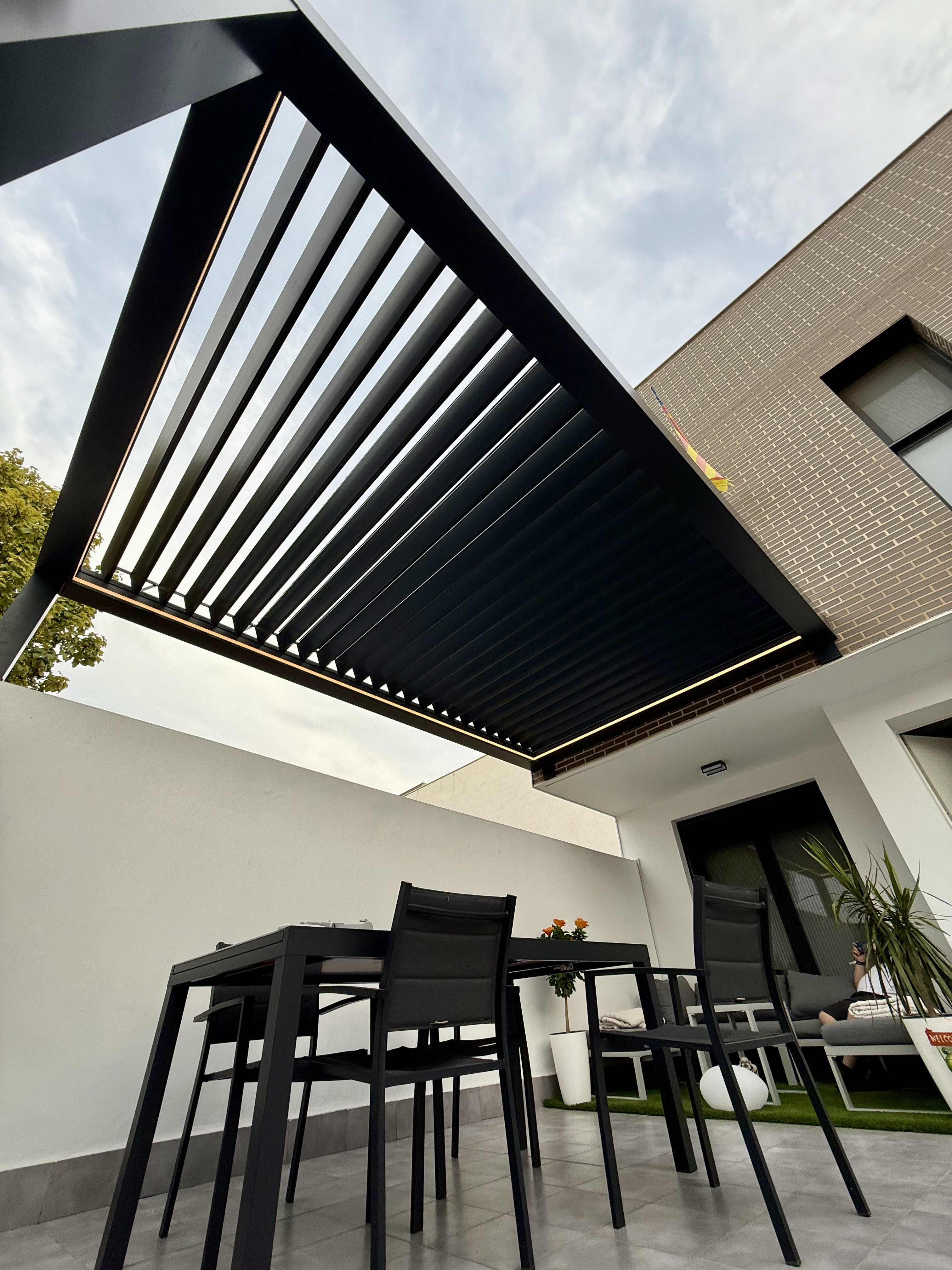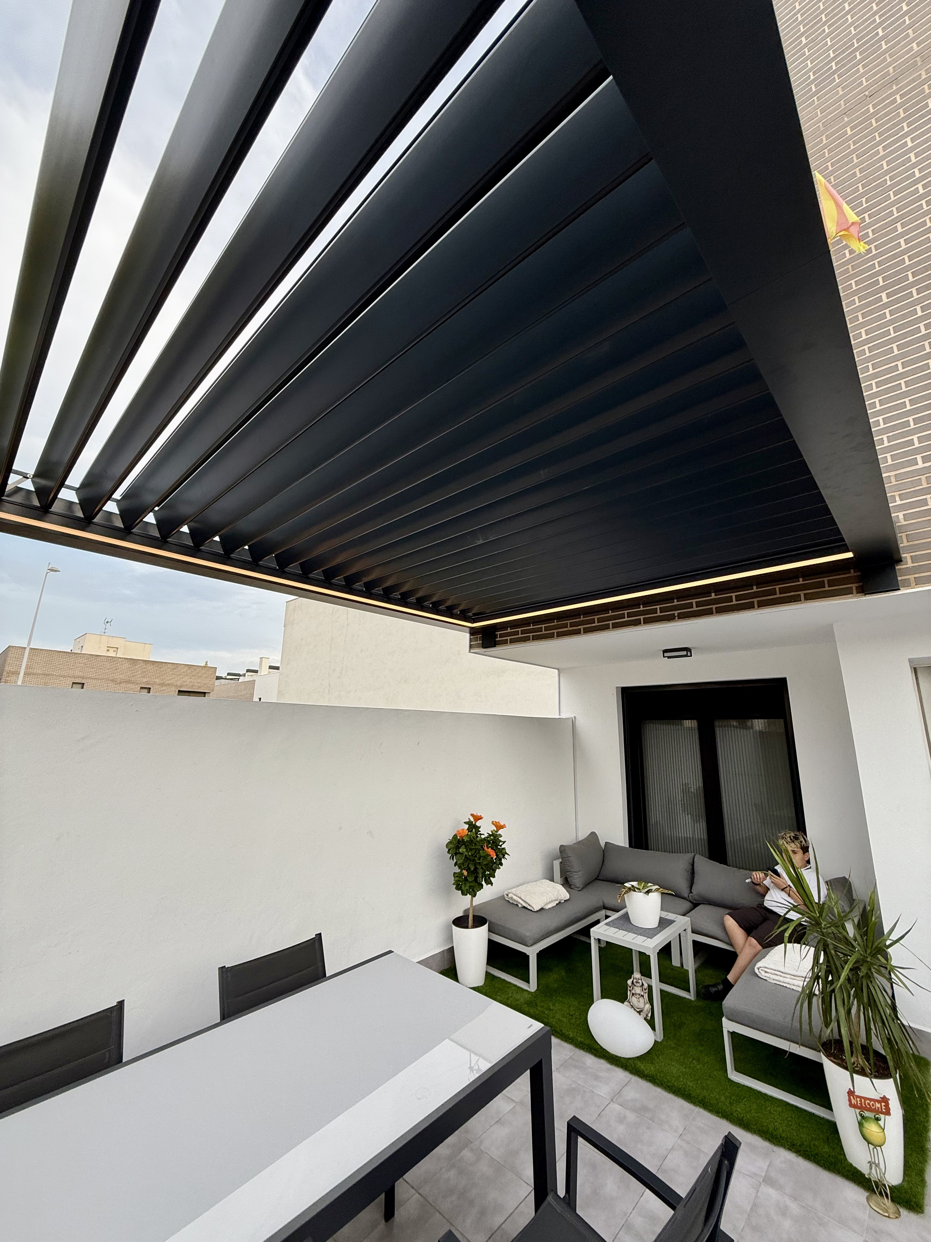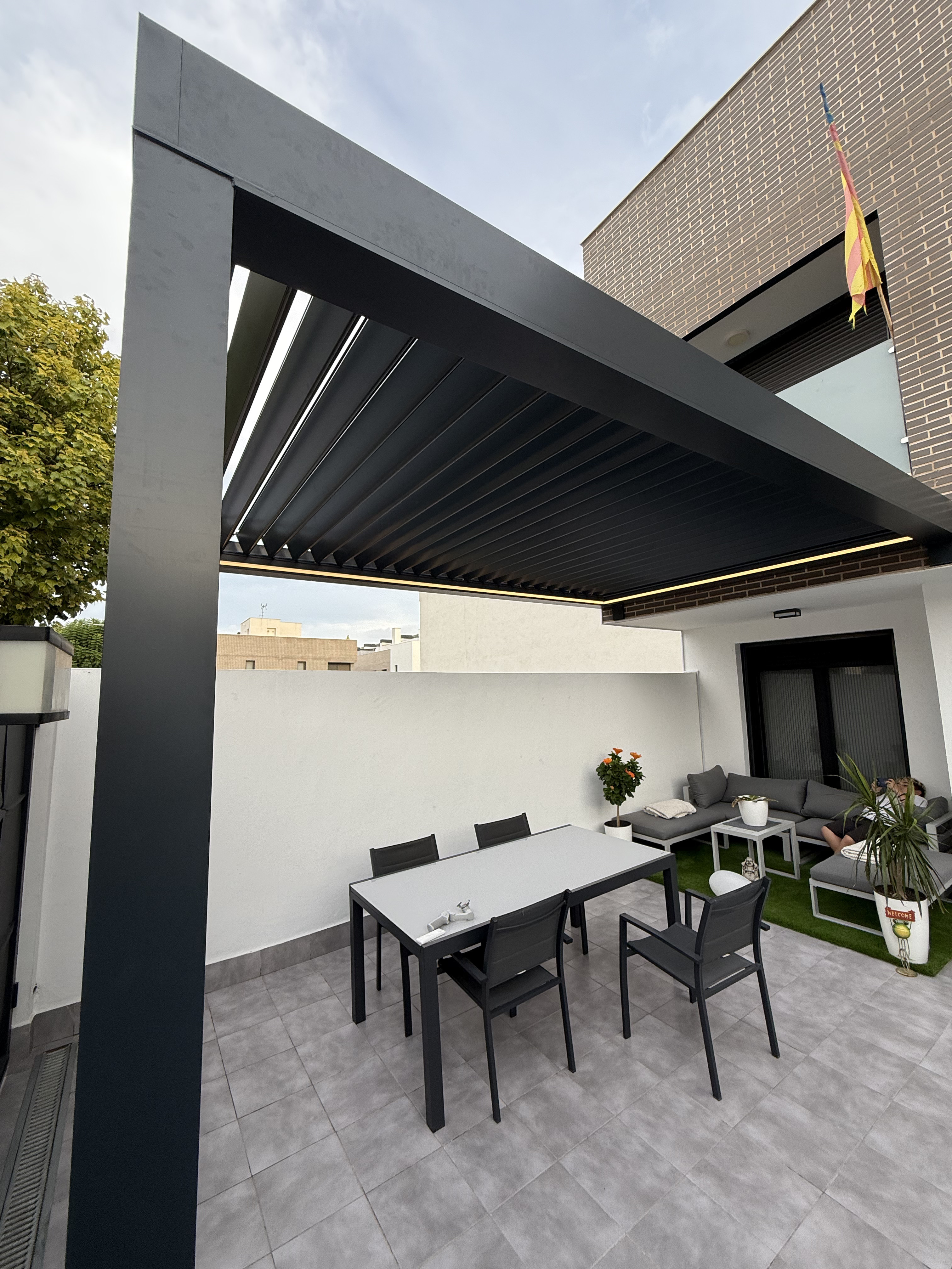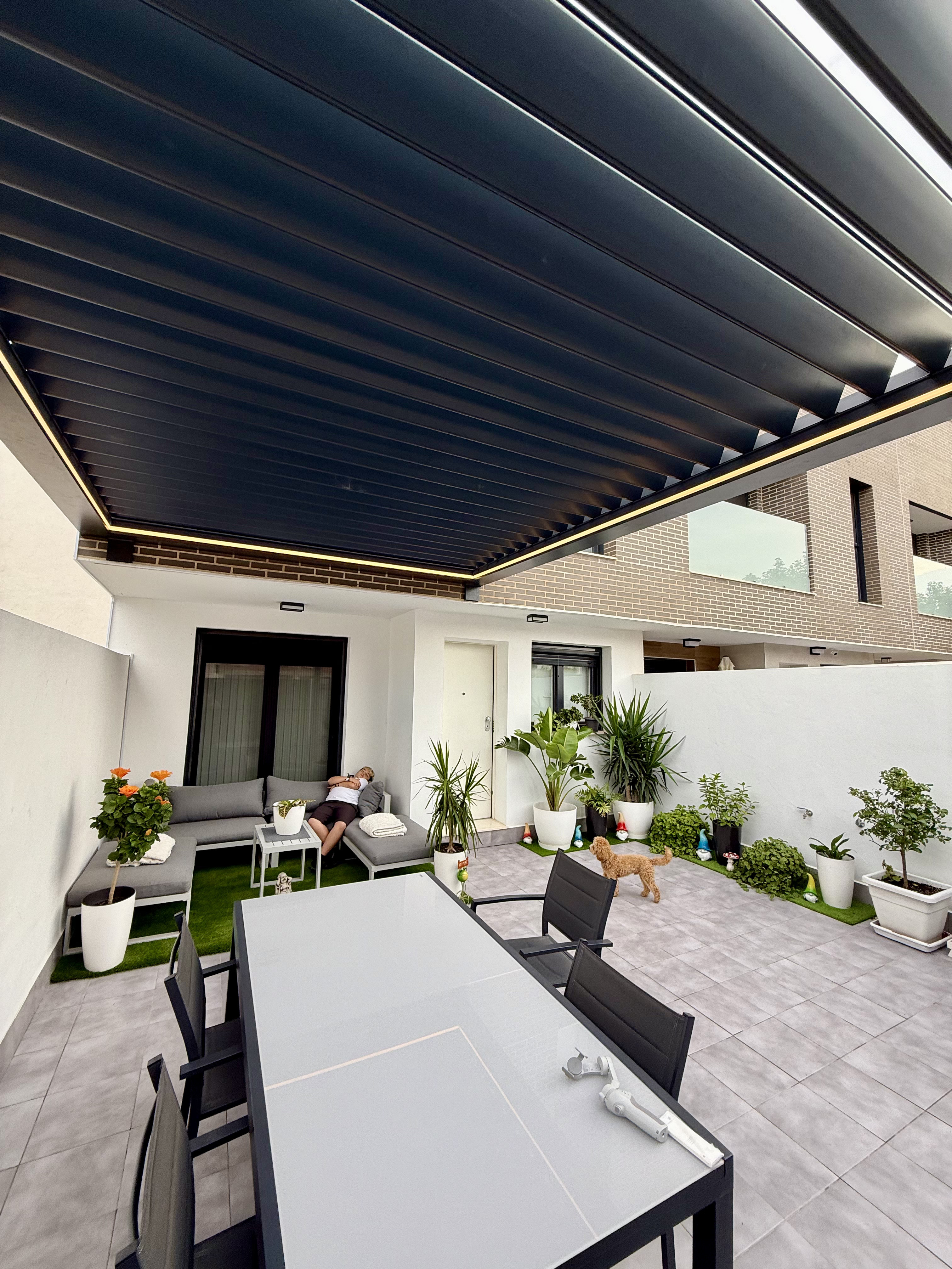 En este proyecto, situado en Paiporta (Valencia), llevamos a cabo la instalación de una pérgola bioclimática Apex Tilt que destaca por su integración arquitectónica y su diseño limpio. El sistema de lamas orientables permite regular la entrada de luz y ventilación de manera precisa, creando un ambiente confortable en cualquier momento del día.